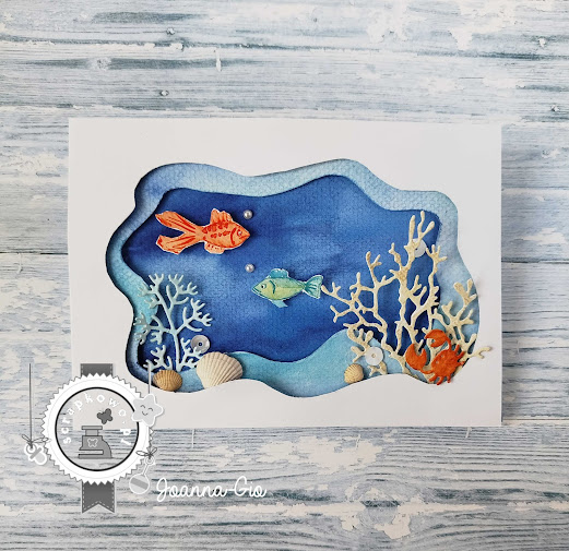 Moja inspiracja dla sklepiku Scrapkowo - Kartka z okazji Dnia Rybaka.💙 Do jej wykonania użyłam papieru i farb akwarelowych. Wycięłam też nachodzące na siebie ramki, podkleiłam je kosteczkami 3D, uzyskując efekt przestrzeni a kolorami, efekt głębi.